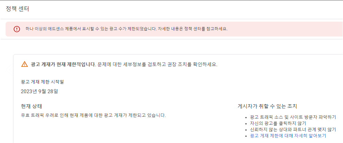 | 에드센스 광고게제 제한과 해결 방법 (3) | 2023.10.02 |