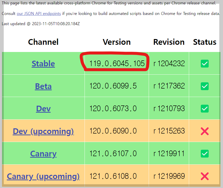 동그라미 처럼 같은 버전을 선택합니다. 그리고 앞에 채널의 링크를 누릅니다.