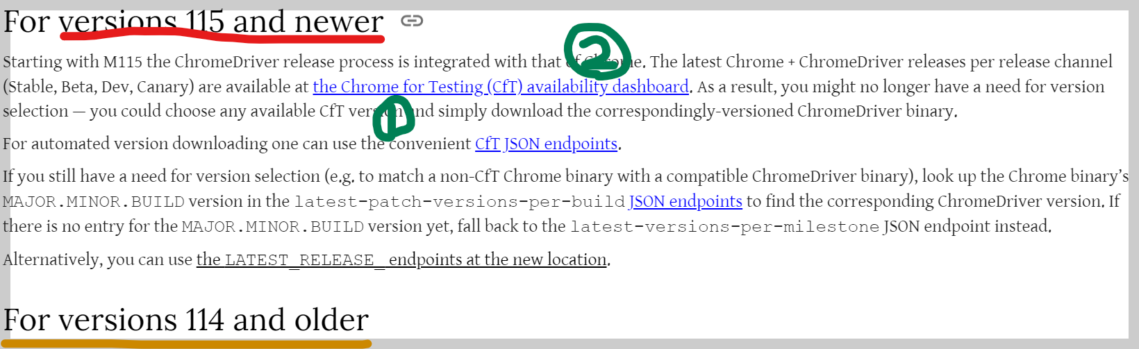 Version selection is the process of matching a Chrome binary of a given version to a compatible ChromeDriver binary. For versions 115 and newer Starting with M115 the ChromeDriver release process is integrated with that of Chrome. The latest Chrome + Chrom