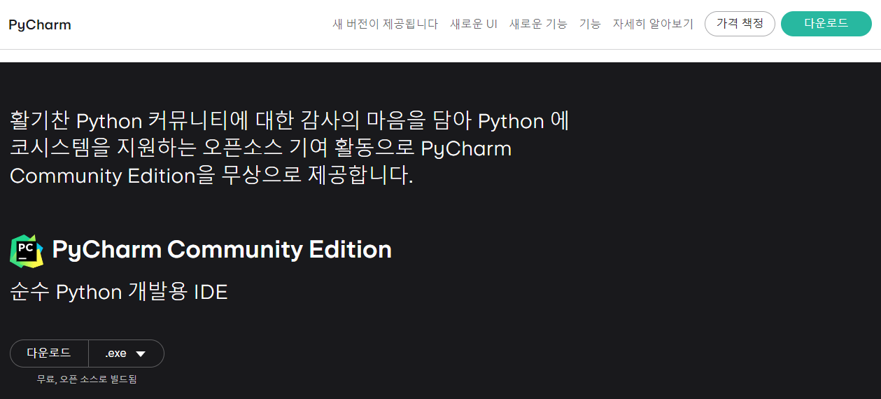 파이참은 유료인데, 순수 파이썬 개발용 IDE는 무료로 사용할 수 있다.
